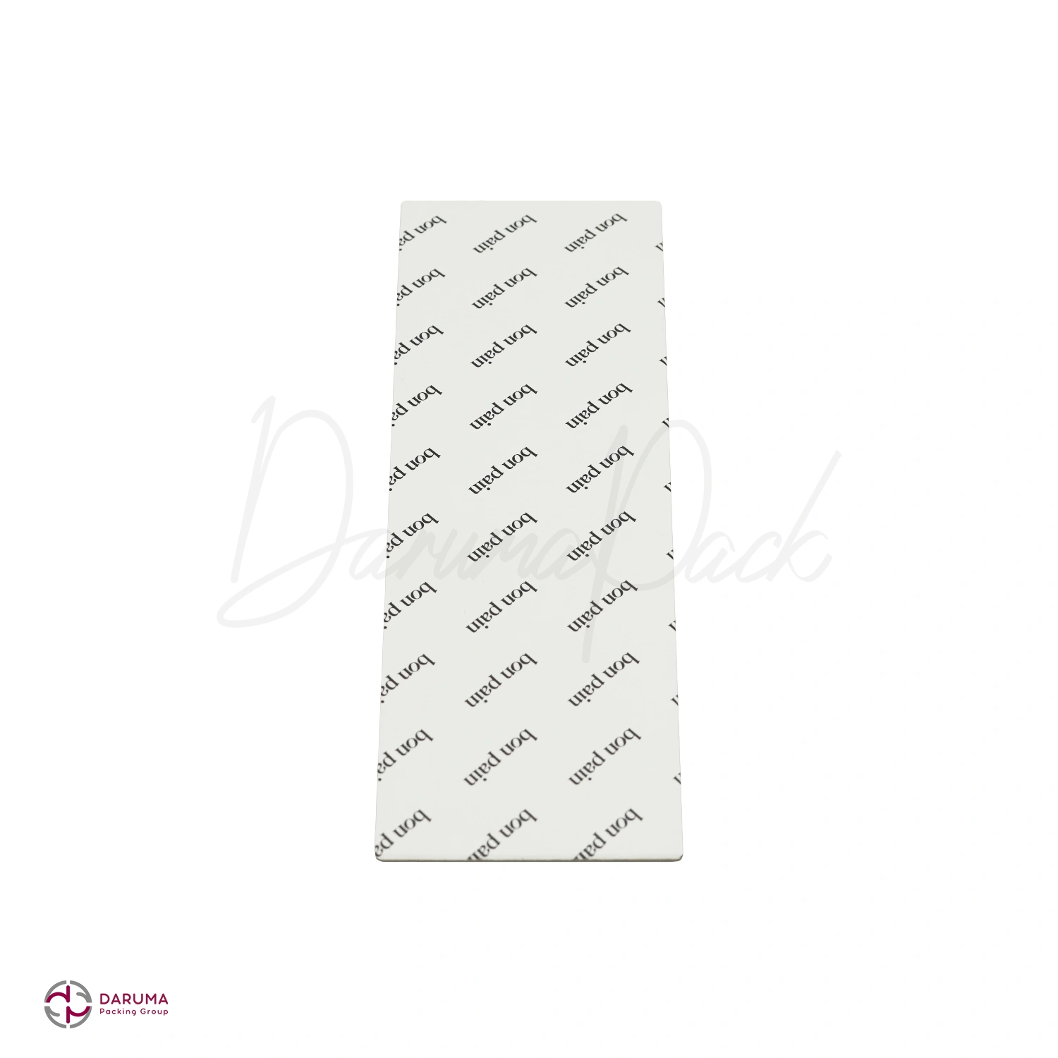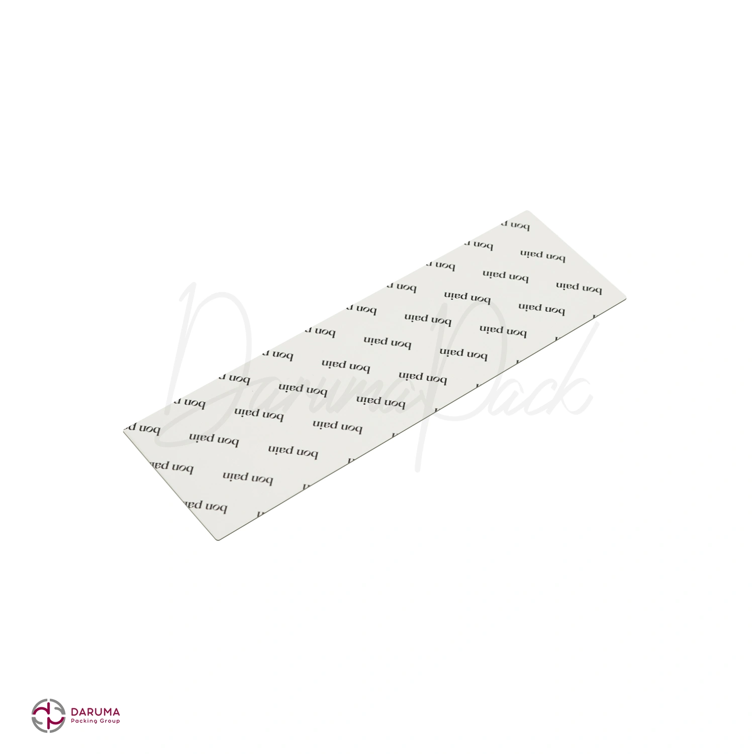 زیر دسری مستطیلی داروما پک با ابعاد ۱۵×۵ سانتیمتر و از جنس دوپلکس تولید میشود. این محصول مانند سایر تولیدات داروماپک، بهصورت کاملاً اختصاصی اجرا میگردد و نمونه آماده یا عمومی ندارد. طراحی کشیده و ساده آن باعث میشود دسر بهصورت ثابت قرار بگیرد و تمرکز بصری روی خود محصول باقی بماند.